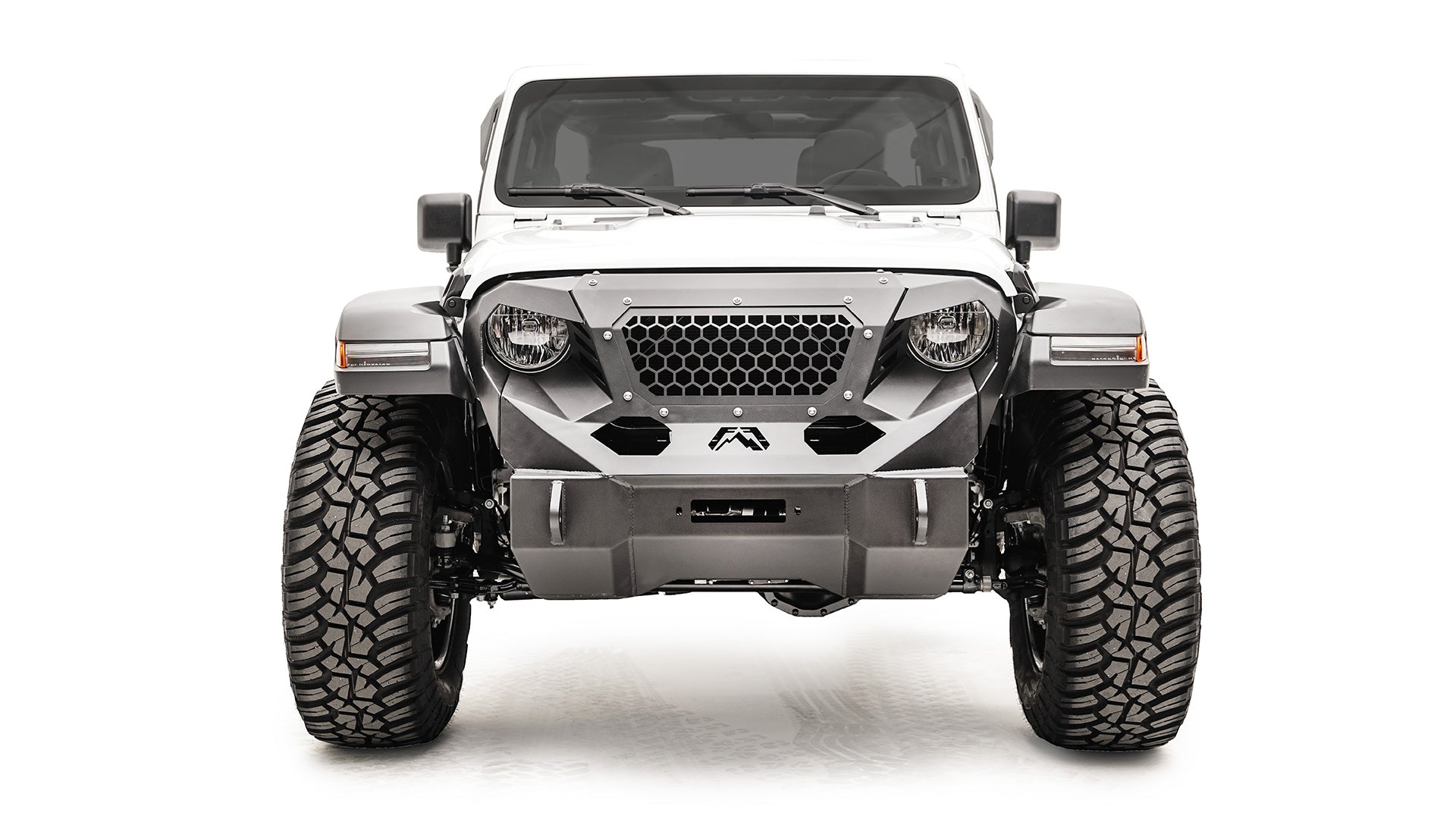 11 gauge US Steel. Aggressive design with combined grill and bumper *US PATENTED* Winch ready for VIKOR INDUSTRIES Rescue VI Winch 10,000lb. Other brand winches with similar housings will also require control box relocation kit - e.g. Warn Zeon, Carbon Winch etc. *SPECIAL INSTRUCTIONS* Angry eye headlight cutouts. Accommodates 20" Light Bar with optional insert GR4606-1. Black Powder Coat Finish. Stubby design to provide far more tyre clearance. Integrated skid plate. Integrated D-Ring Mounts. *Some cutting required - cutting templates are provided* *Does not accomodate trail camera* |