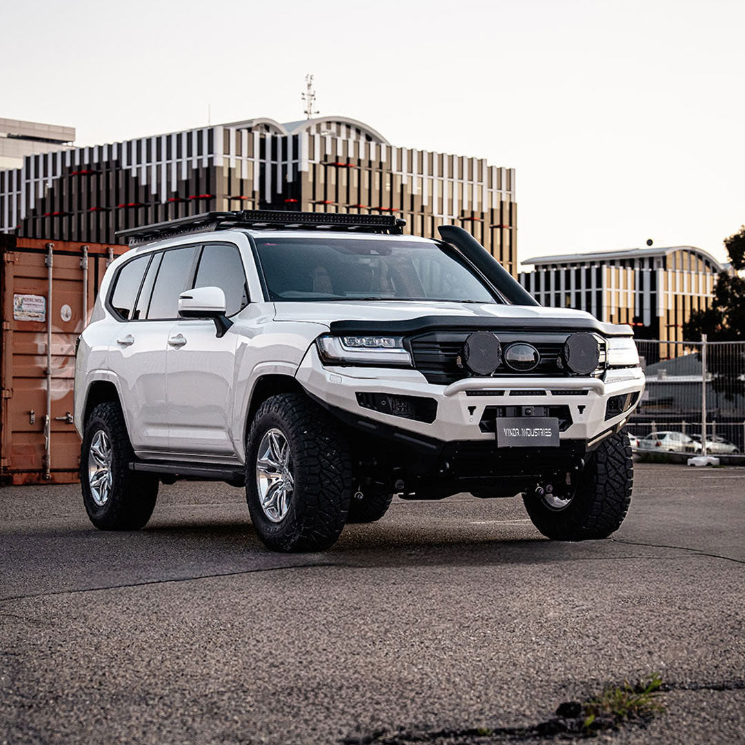 Engineered for those who expect more from their LandCruiser, VIKOR INDUSTRIES offers a refined collection of 4x4 accessories, bull bars, and off-road upgrades for the 300 Series. Each product is purpose-built to enhance both protection and presence—delivering rugged performance with a bold, modern aesthetic. Whether you're heading off-grid or building a standout daily, this range is crafted to match the power, prestige, and potential of your 300.