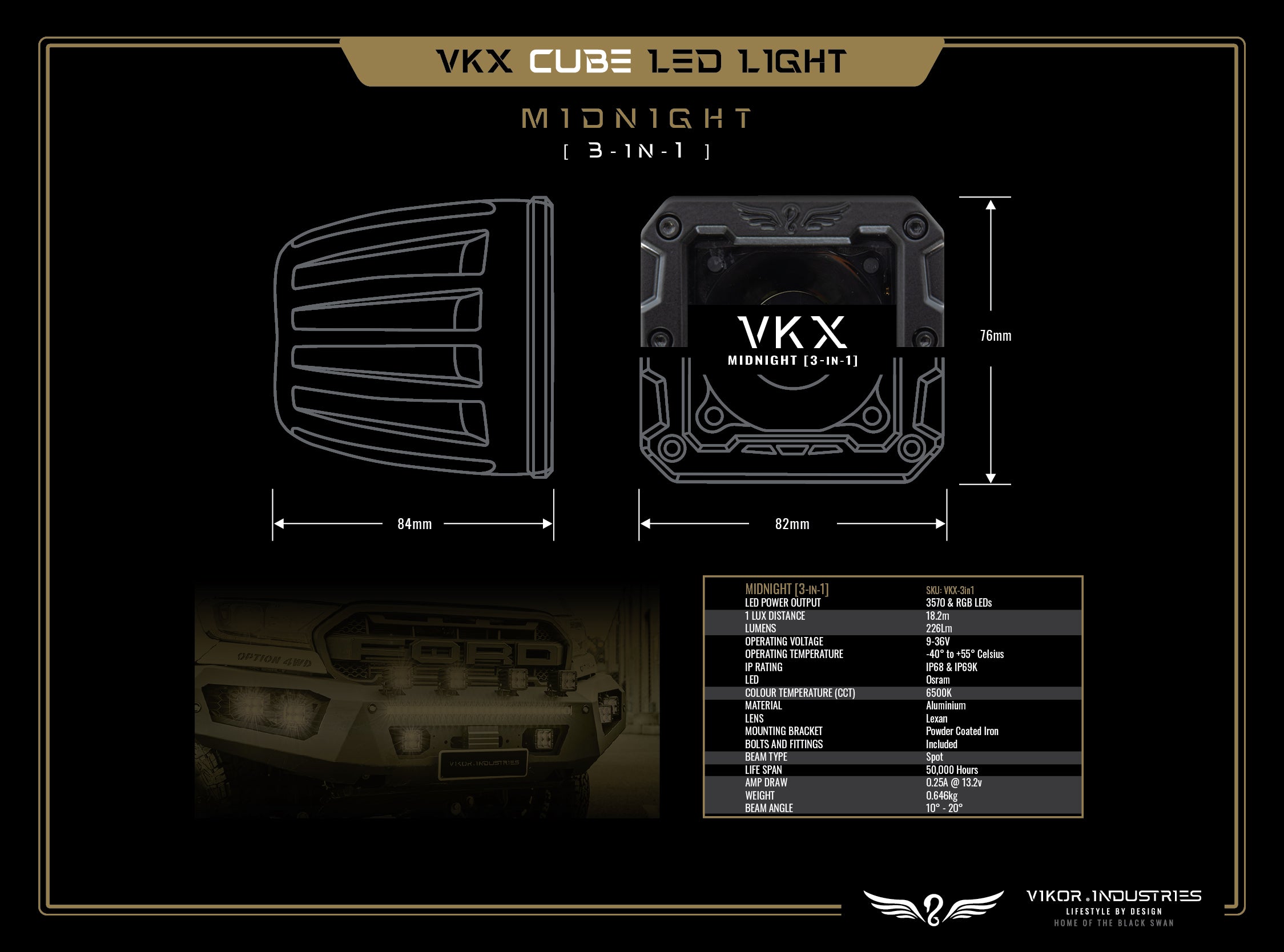 With quick haste, we brought the VKX Midnight LED Cube Light to market. It is now the official product partner of Option 4WD and Fab Fours Australia, and we are encouraged by the incredible feedback thus far for the VKX.