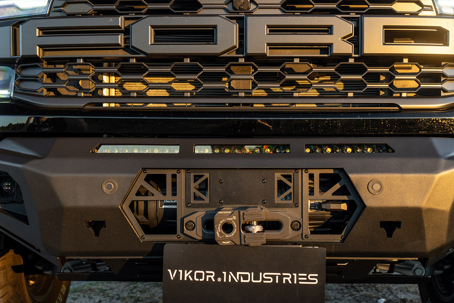 This new-age Next Gen Raptor Bull Bar is the epitome of premium craftsmanship, which transcends traditional bull bar design and construction. The elegantly designed Ford Raptor Bull Bar is constructed from high quality, crash-tested, lightweight aluminium, and finished in the proprietary VIKOR Luxe Matte Black Powdercoat.