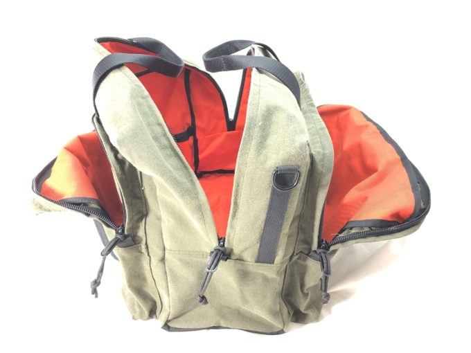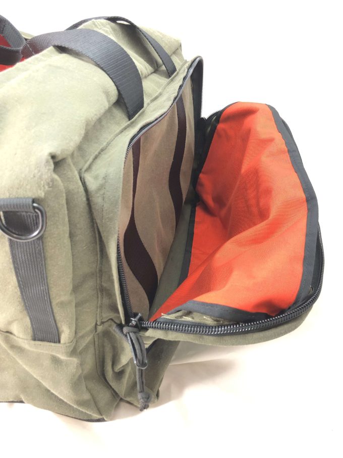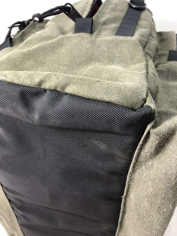 When you receive your new bag, the fresh paraffin in the canvas may still be slightly damp. Once the wax dries completely, which doesn’t take long, the scent virtually disappears. If you wish to speed the wax drying process, simply leave the gear out in the open, unfolded, preferably in sunlight. A few days or so of drying in this manner dries the wax to its final state.