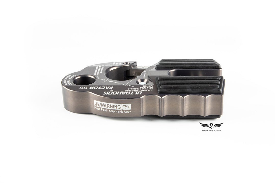 This Factor 55 UltraHook includes EPDM rubber pads for fairlead protection, titanium double shear pin, and a finger grip feature that promotes proper “Hook Up” orientation.
