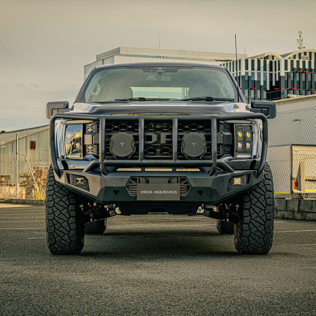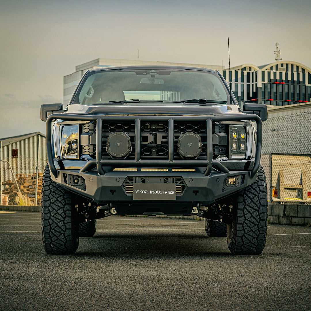 The VIKOR INDUSTRIES team is thrilled to unveil the Diablo Collection Full Guard Bull Bar, setting a new benchmark in strength, performance, and sophistication for the 2021+ Ford F150.