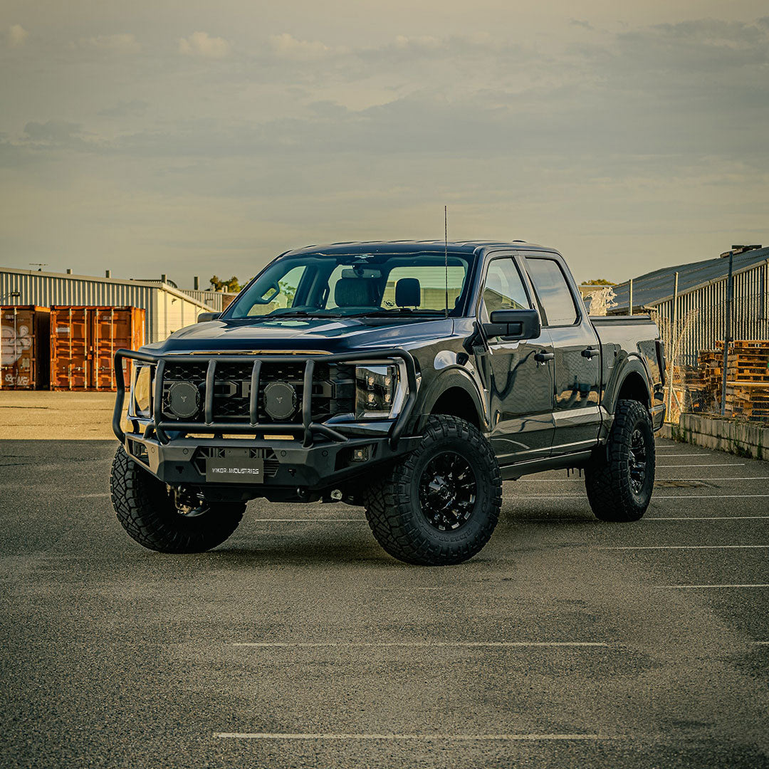 Equip your Ford F150 2021+ with the Diablo Full Guard Bull Bar from VIKOR INDUSTRIES, where advanced engineering meets rugged durability. Designed for those who demand bold protection without compromising style, experience a "Lifestyle By Design."