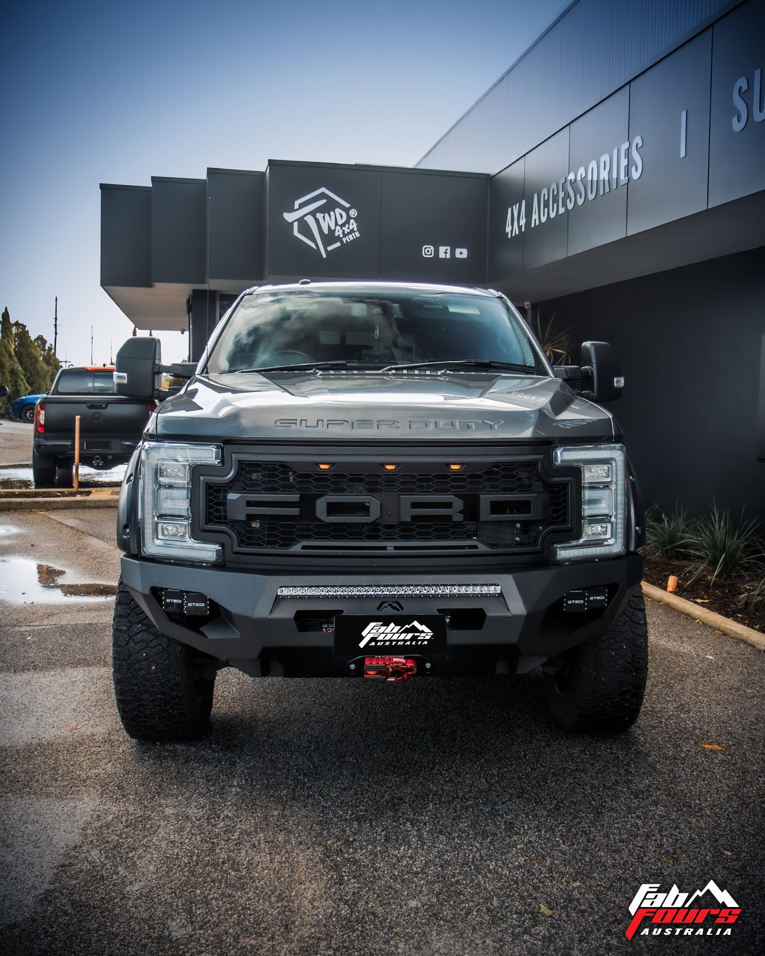 Manufactured in the USA. This Ford F250 Bull Bar is available in Australia with pre-runner guard or no guard.