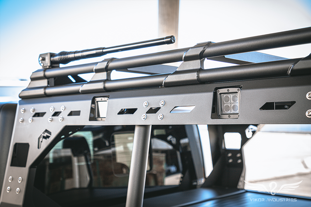 The reinforced, flat side rail design finishes off the premium VIKOR INDUSTRIES Jeep Gladiator Electric Roller Shutter, and also allows for fitting of OEM sports bars (with our universal Sports Bar Brackets), as well as many popular aftermarket sports/roll bars (with minor customisations). These include the Overland Rack from our partners at Fab Fours Australia.