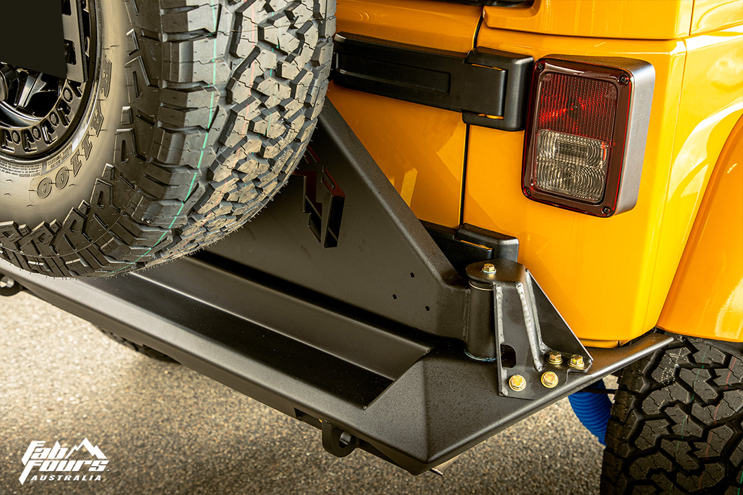 Fab Fours Australia presented by VIKOR INDUSTRIES have a neat Jeep Wrangler JK Rear Bumper Tyre Carrier.