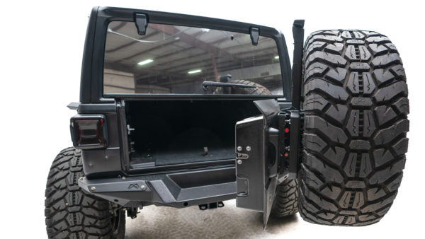 Fab Fours Australia presented by VIKOR INDUSTRIES have a neat Jeep Wrangler JL Rear Bumper Tyre Carrier.