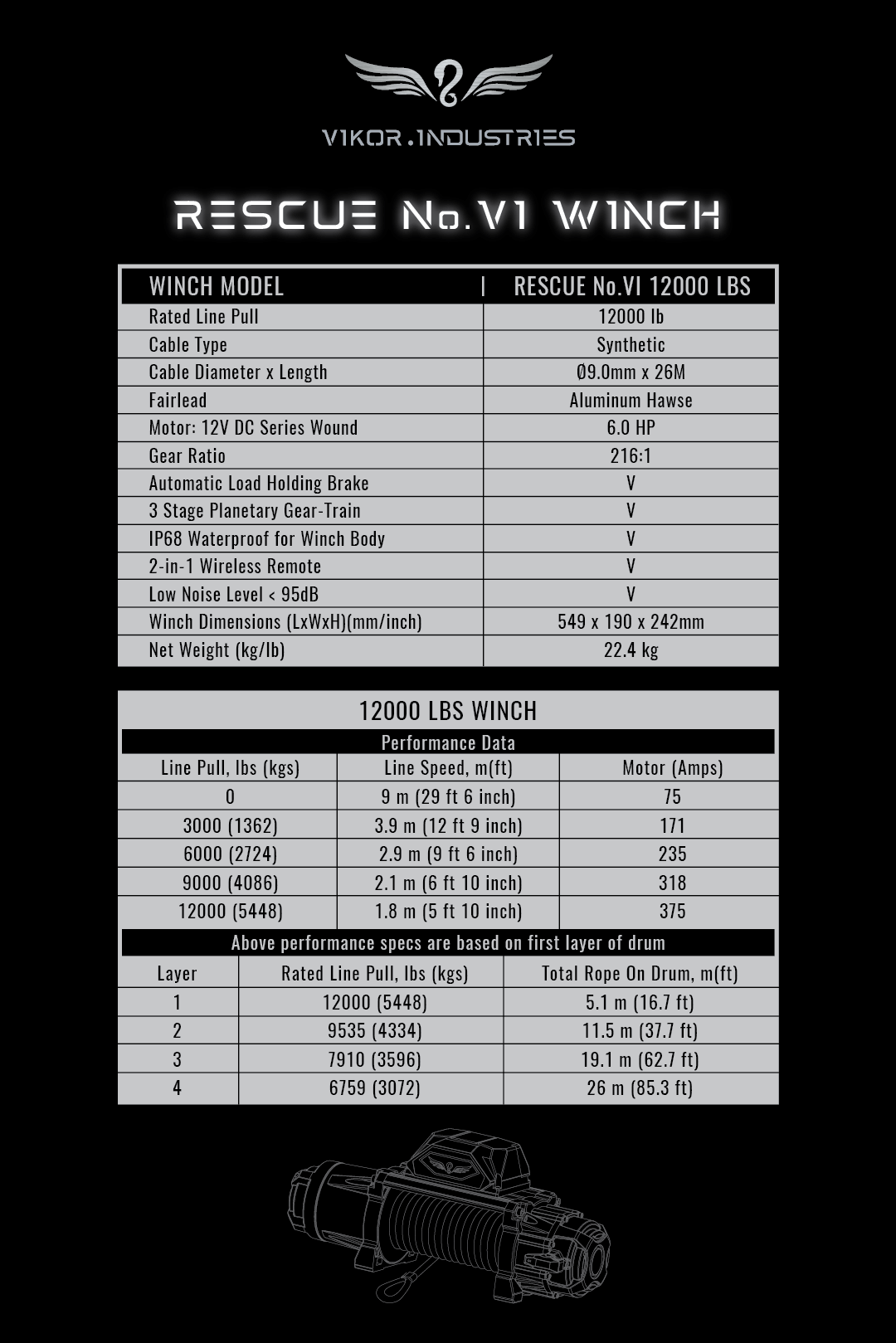 VIKOR INDUSTRIES presents the all-new Rescue VI 4x4 Winch – rated to 12,000lb with Synthetic Rope. This winch for your 4x4 is a premium option for most popular utes and trucks.